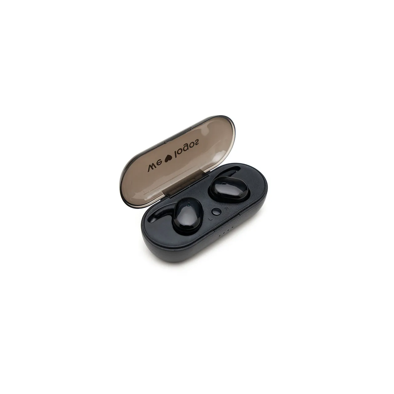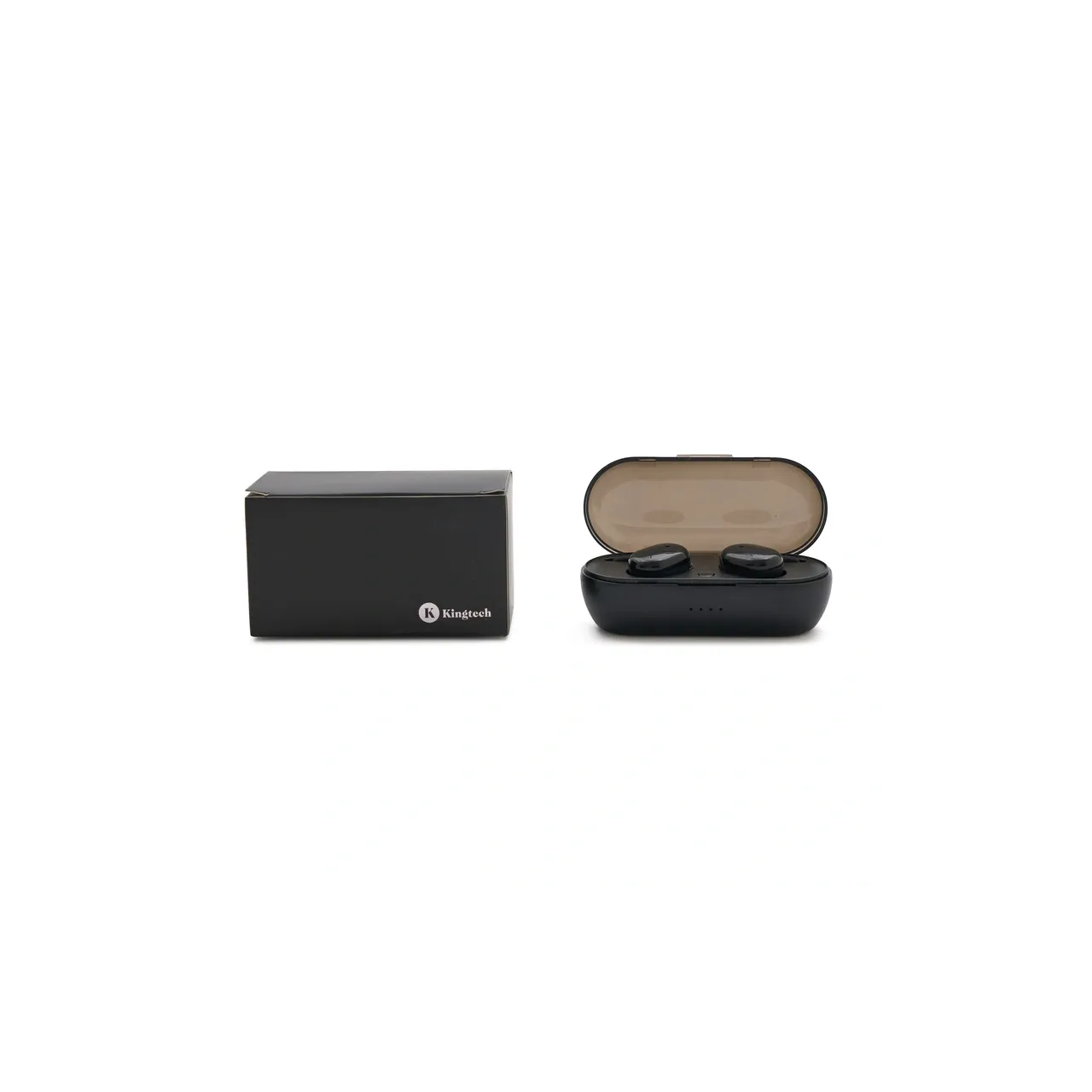 Auriculares inalámbricos con estuche de carga y micrófono incorporado. Posee tecnología bluetooth 5.0, la capacidad del auricular es de 55mAh y su capacidad de carga es de 300mAh. Cuenta con cobertura bluetooth en una distancia de 10 metros y su duración en funcionamiento es de 3 horas seguidas.