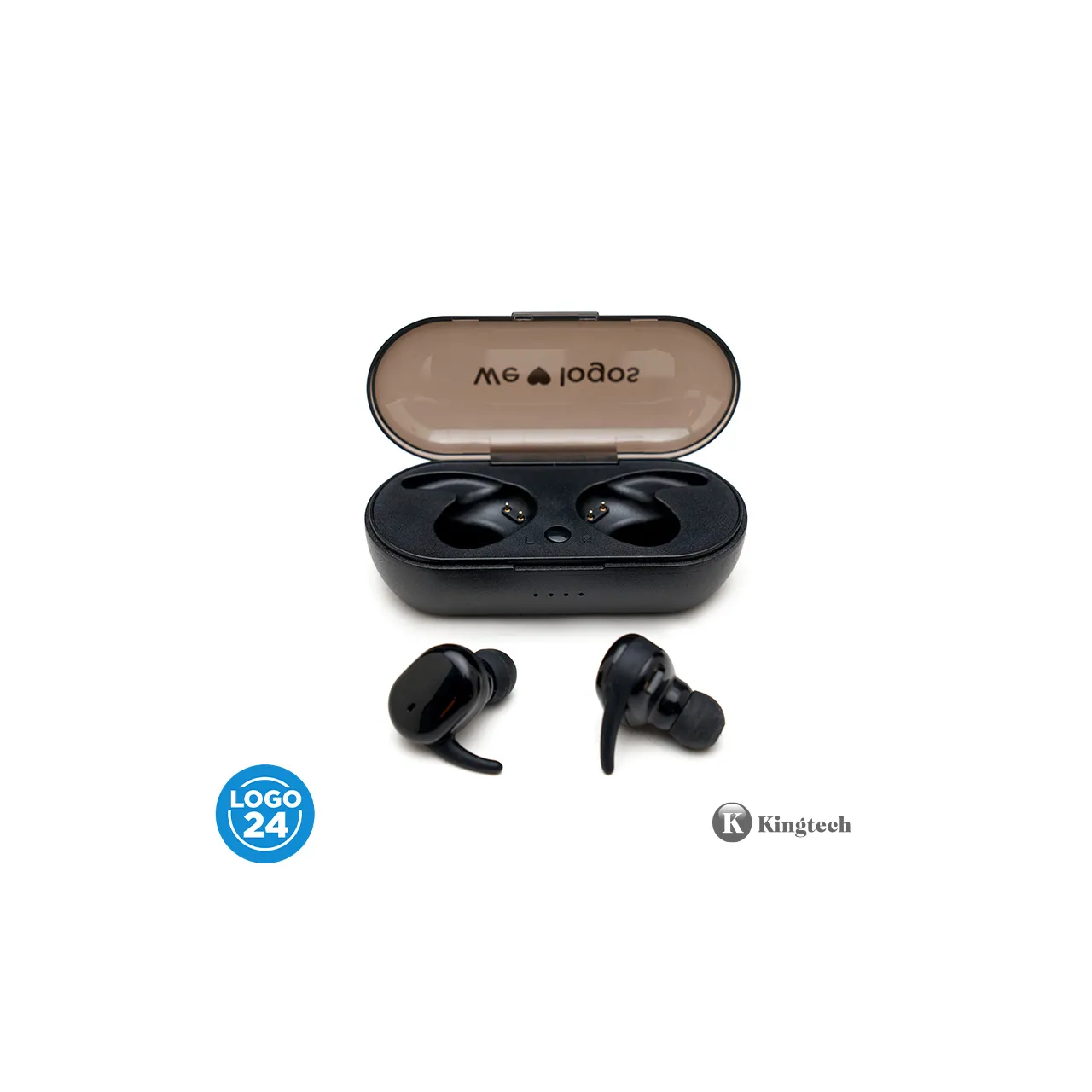Auriculares inalámbricos con estuche de carga y micrófono incorporado. Posee tecnología bluetooth 5.0. La capacidad del auricular es de 30mAh y su capacidad de carga es de 300mAh. Cuenta con cobertura bluetooth en una distancia de 10 metros y su duración en funcionamiento es de 2 horas seguidas. El tiempo de carga es de 1 hora. Medidas: 3.5 x 6cm.