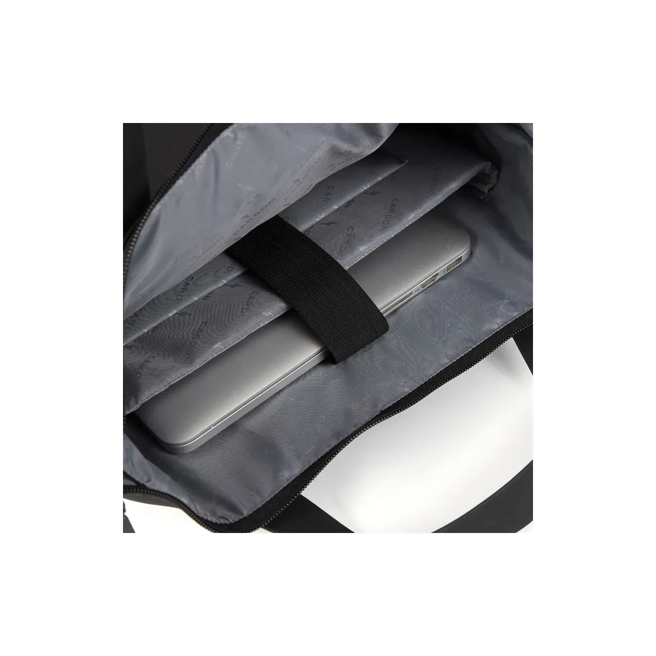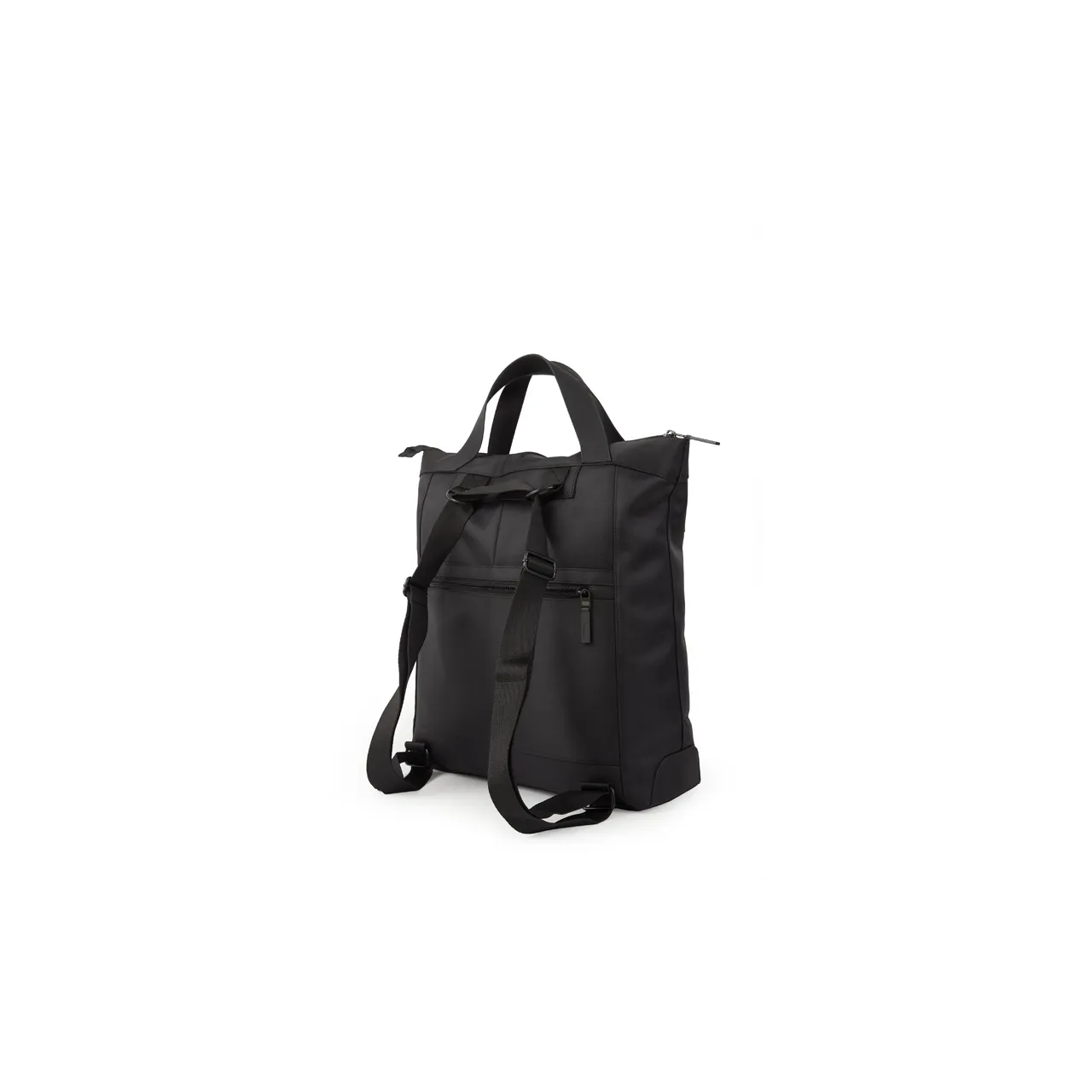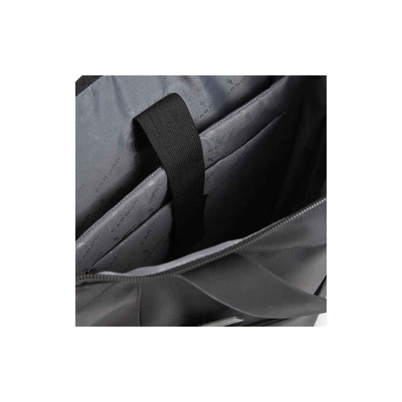 Bolso tote confeccionado en Polyester con cierres en tono y cabezal negro. Cuenta con un compartimiento principal amplio que posee un espacio porta notebook 14” y otro más pequeño para la agenda, sujetados con un elástico negro. Posee un bolsillo frontal y uno trasero, ambos con cierre. Manijas de goma y correas para espalda regulables, para que la utilices de la forma que más te guste. Ideal para llevarla al trabajo o facultad. Dimensiones: 39 x 34 x 13 cm (Alto x Longitud x Ancho). Capacidad: 13L. Cardon.