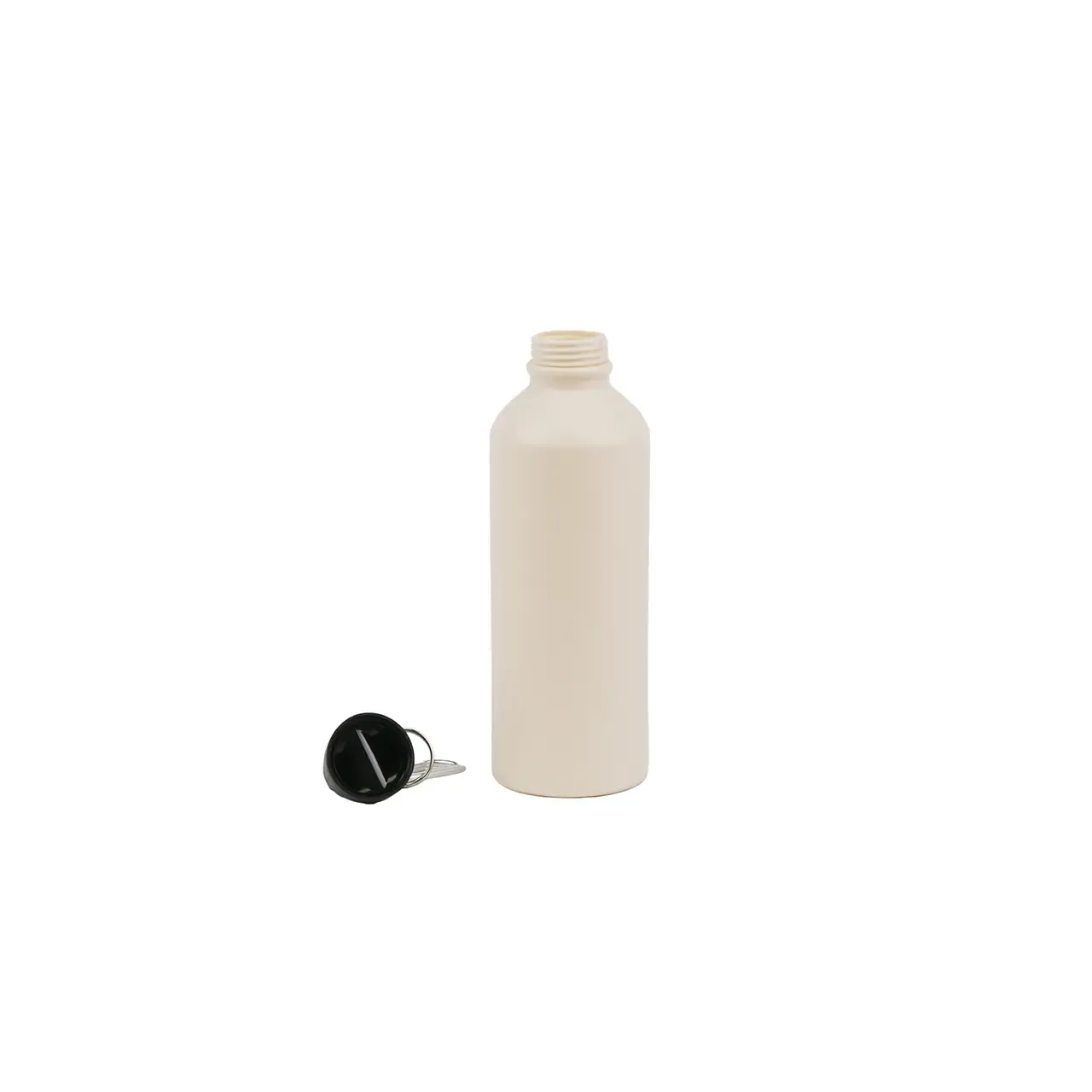 Botella reutilizable fabricada con cuerpo de PE y tapa de PP, en acabado natural. Cuenta con una tapa a rosca con orificio para transportar fácilmente. Es ideal para mantenerse hidratado durante entrenamientos, caminatas o jornadas laborales.