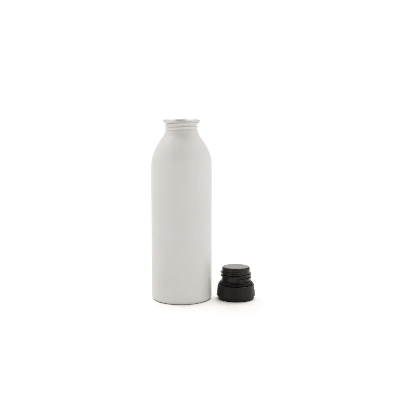 Botella de 500 ml confeccionada en aluminio, con tapa a rosca fabricada en PP. Ideal para el día a día o para tus actividades deportivas. Con impacto positivo en el medio ambiente, esta botella reutilizable te ayuda a reducir el consumo de plástico de un solo uso. El producto viene presentado en una bolsa de PLA 100% compostable. Producto libre de BPA.