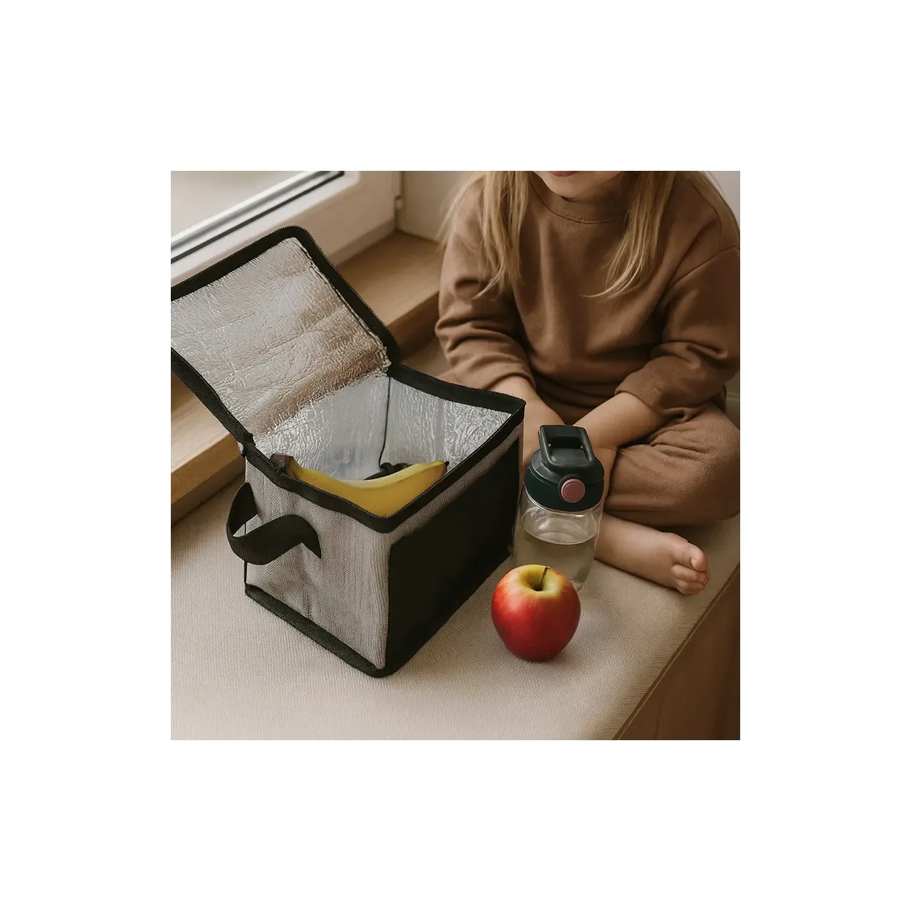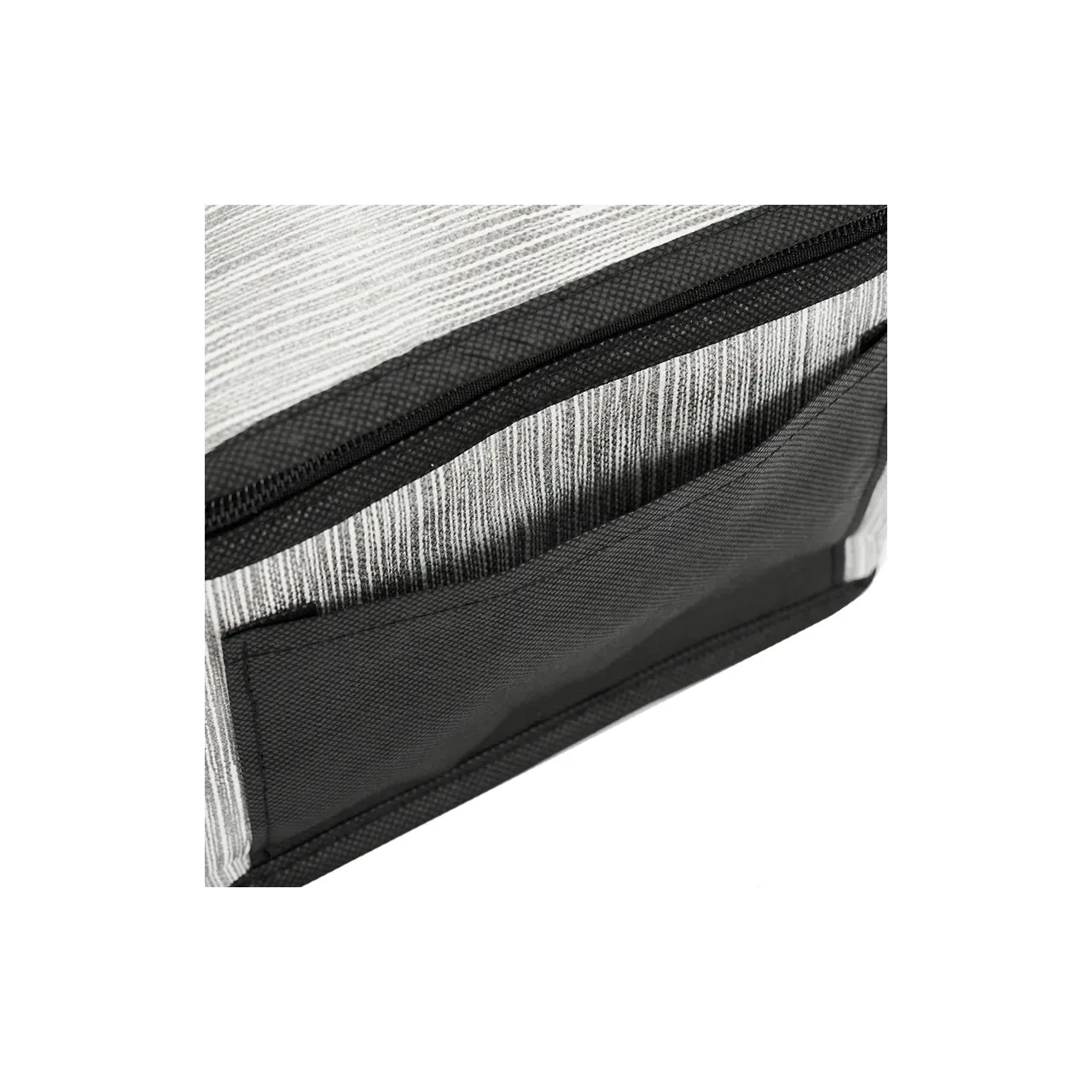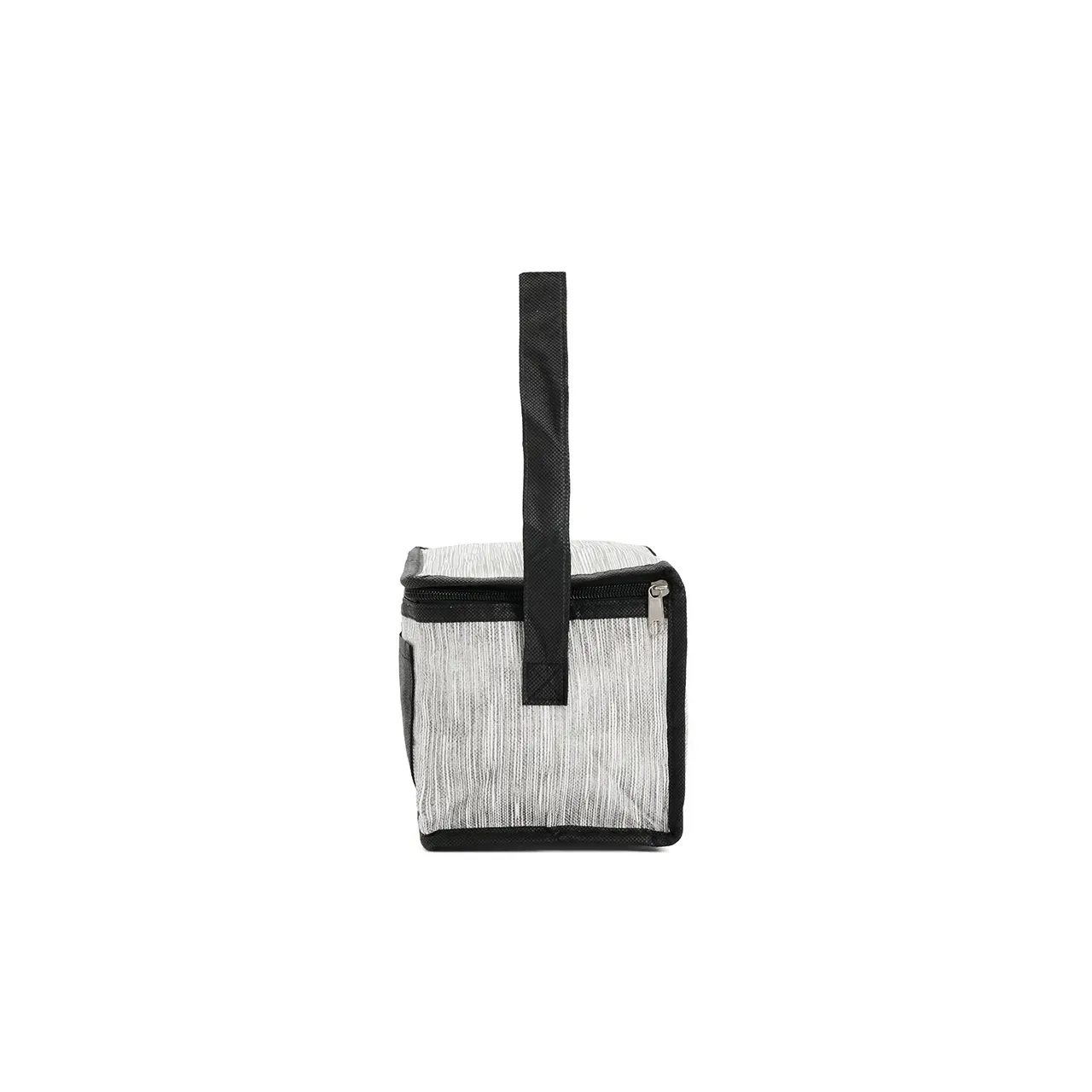 Cooler rectangular compacto con cierre y manijas laterales. Está confeccionado en polipropileno no tejido, con interior forrado en aluminio. Cuenta con compartimiento principal con cierre y asas a los lados para transporte. Es ideal para conservar alimentos y bebidas en salidas.