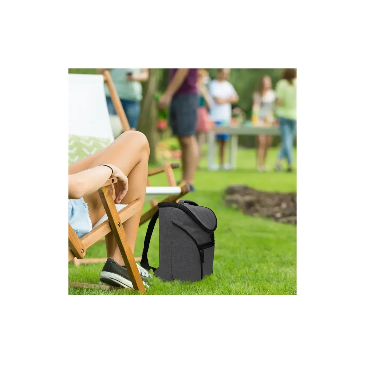 Formato tipo mochila. Realizado en RPET/Polyester , confeccionado a partir de botellas recicladas. Interior térmico. Medidas: 25 x 19,5 x 34 cm. Capacidad: 16 Lts. ReUseMe.