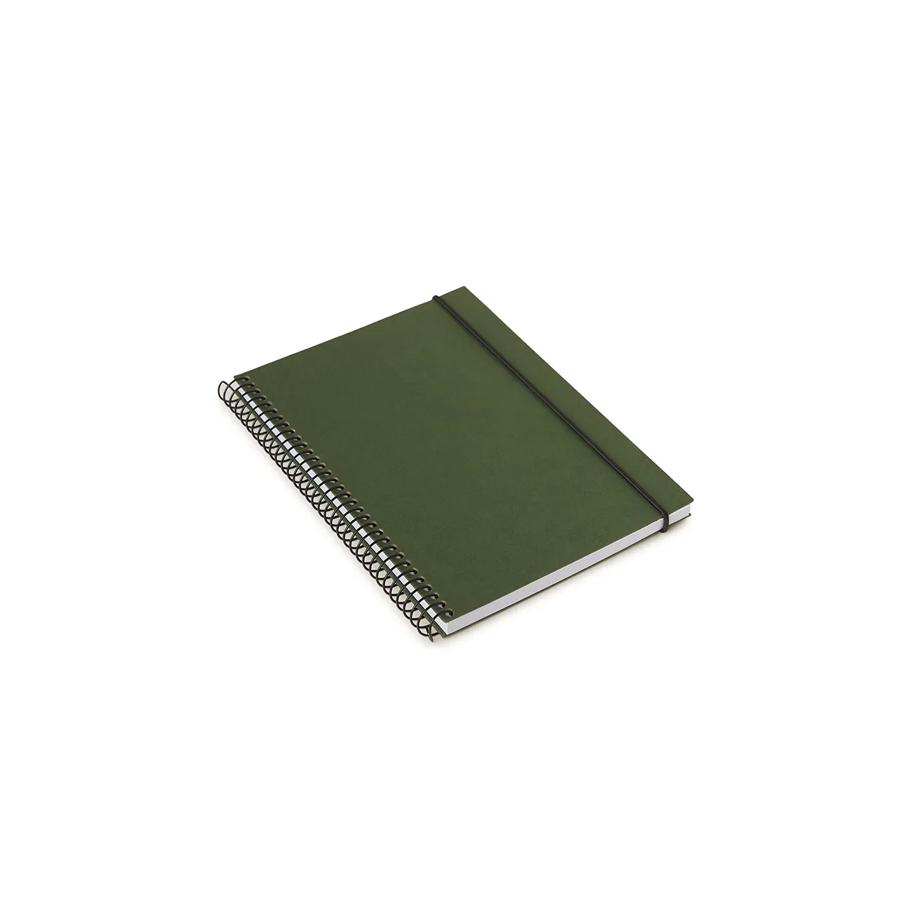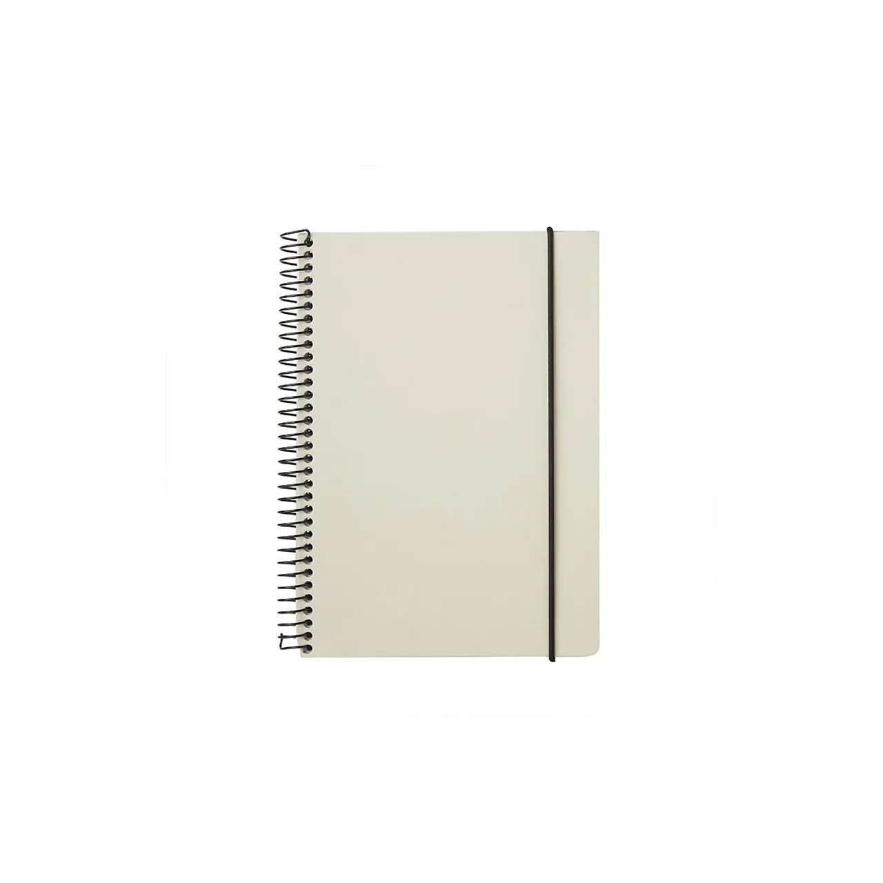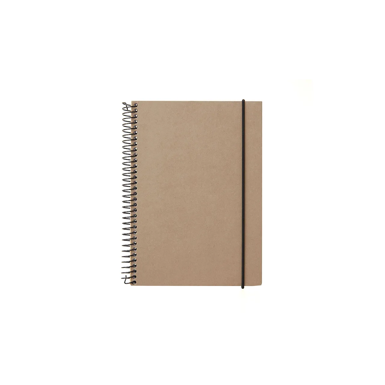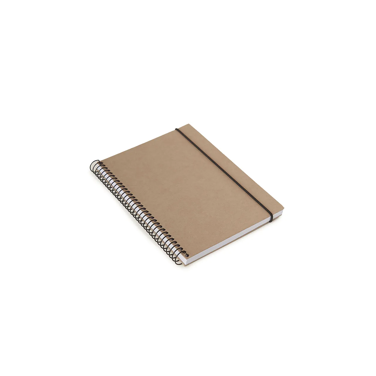 Cuaderno anillado con tapa confeccionado con papel Kraft y 100 hojas lisas de 170 gr. Cuenta con un cierre elástico. Medidas : 14,8 x 21,2 cm. Se presenta protegido en bolsa. ReUseMe.