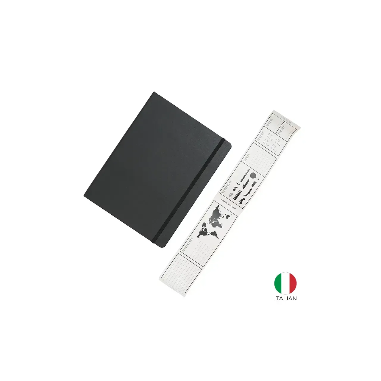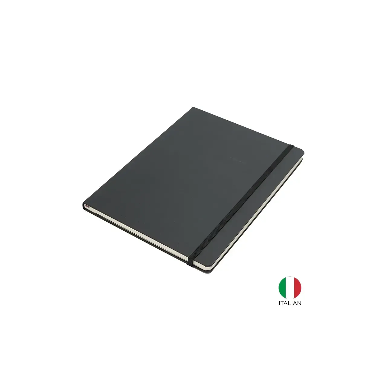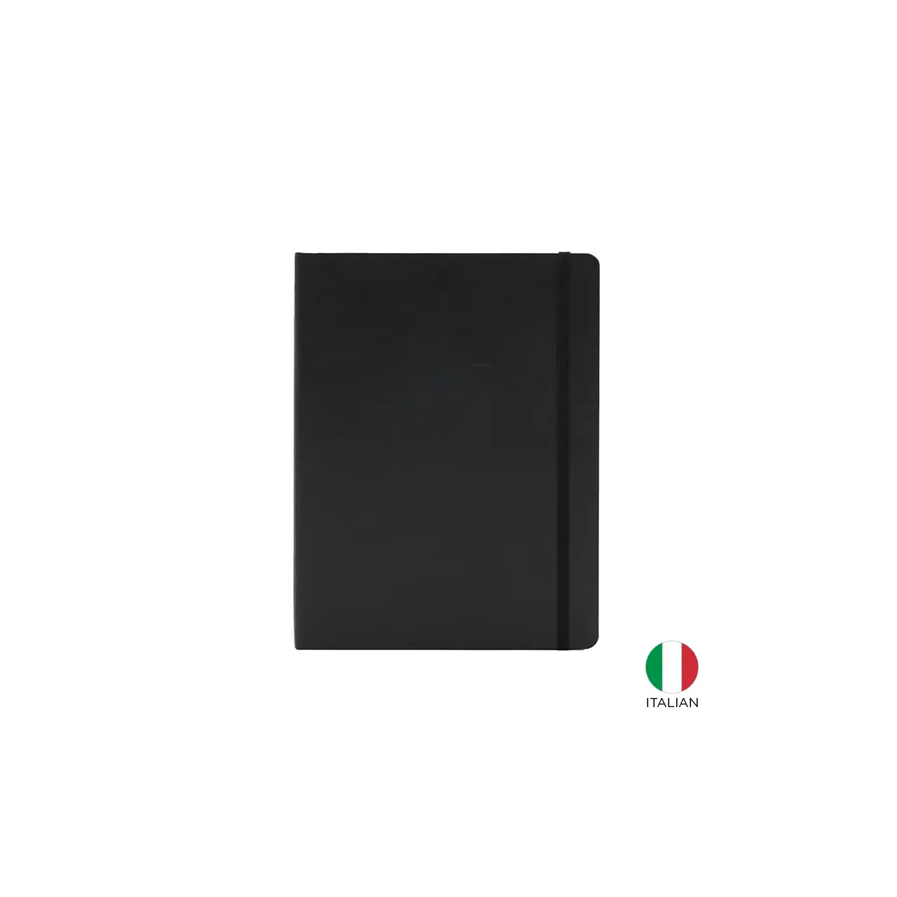 Cuenta con esquinas redondeadas, cierre elástico y una cinta marcapáginas a juego para facilitar la organización. Además, posee un práctico bolsillo interior expandible en la parte trasera, ideal para guardar notas y documentos pequeños. Su encuadernación permite una apertura de 180°, asegurando comodidad al escribir.