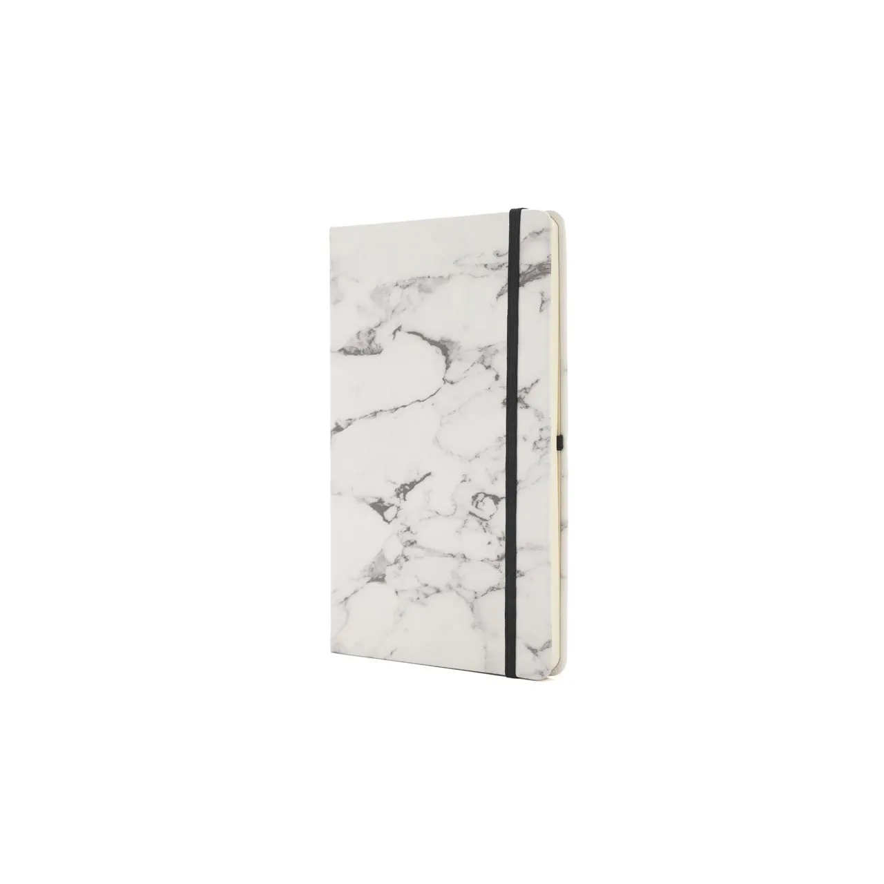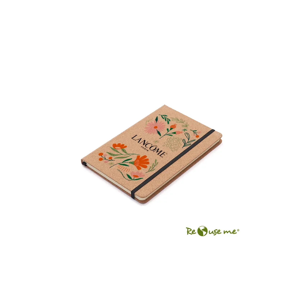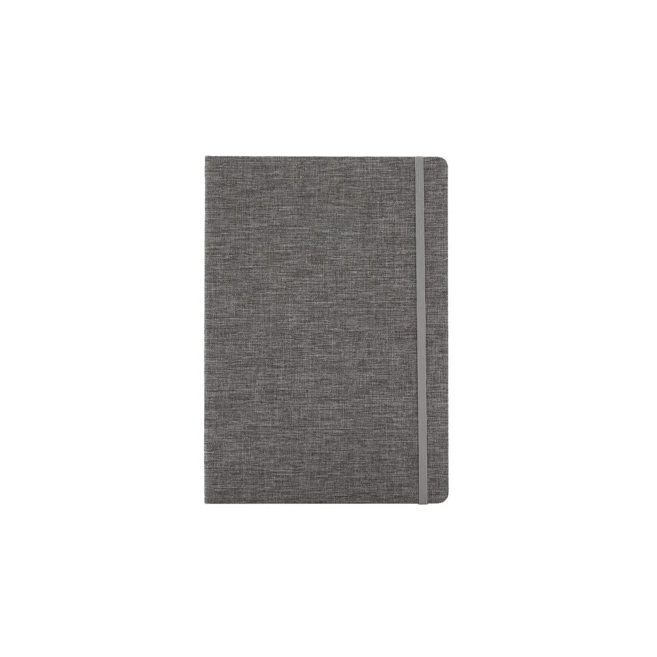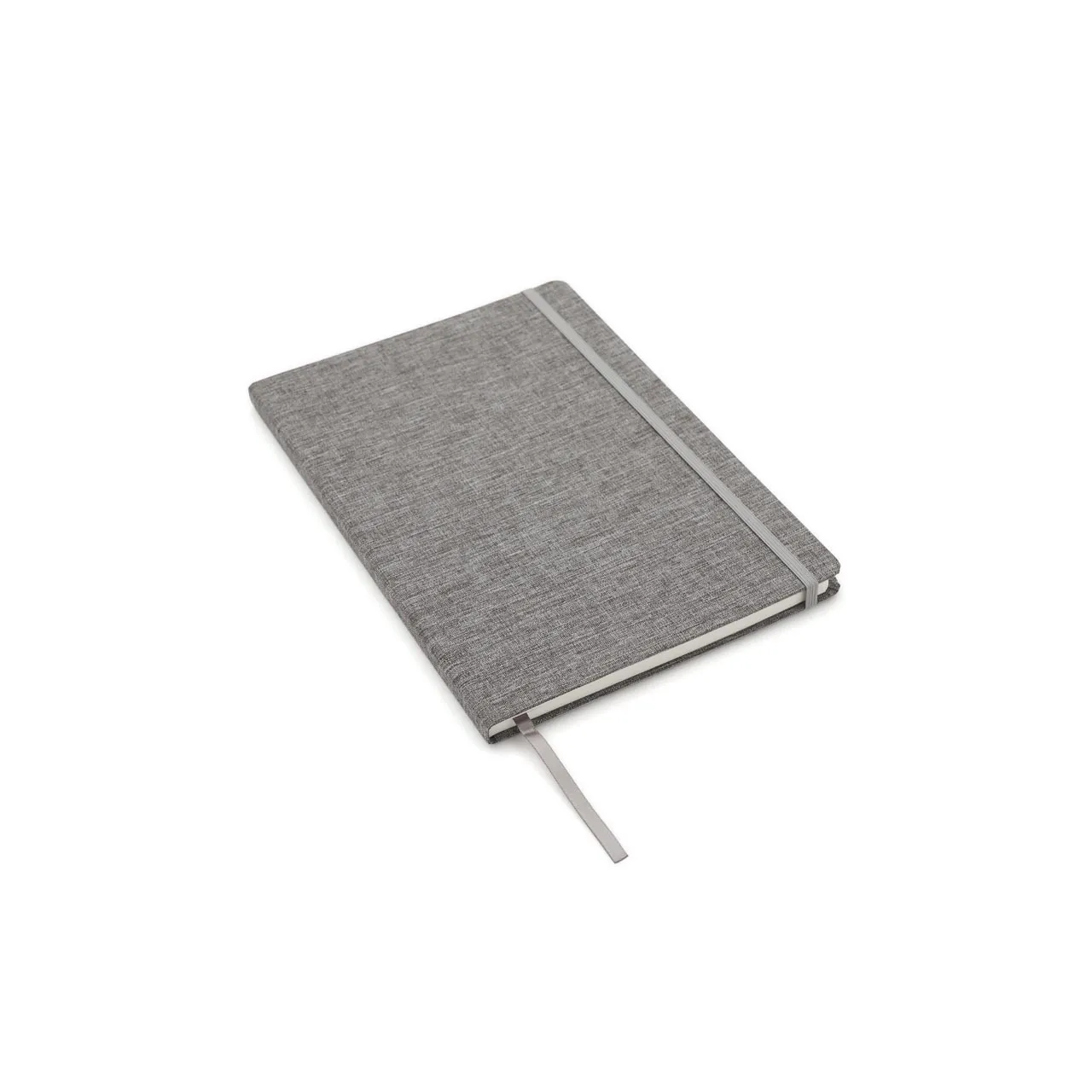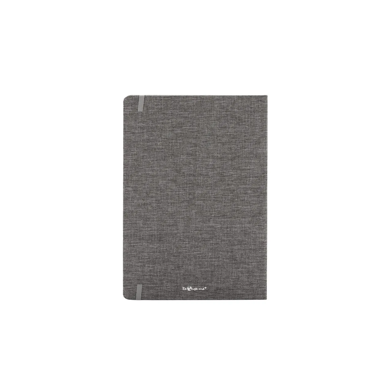 Cuaderno de tapa confeccionado con material RPET, hecho con botellas de plástico reciclado. Cuenta con una cinta marcadora y un cierre elástico. 96 hojas lisas de 70g de bordes redondeados.