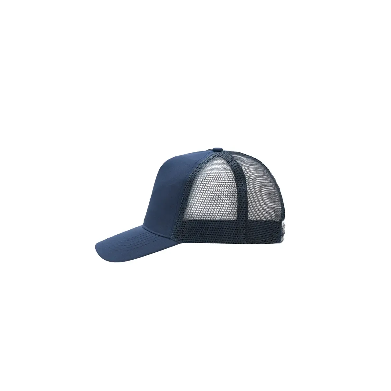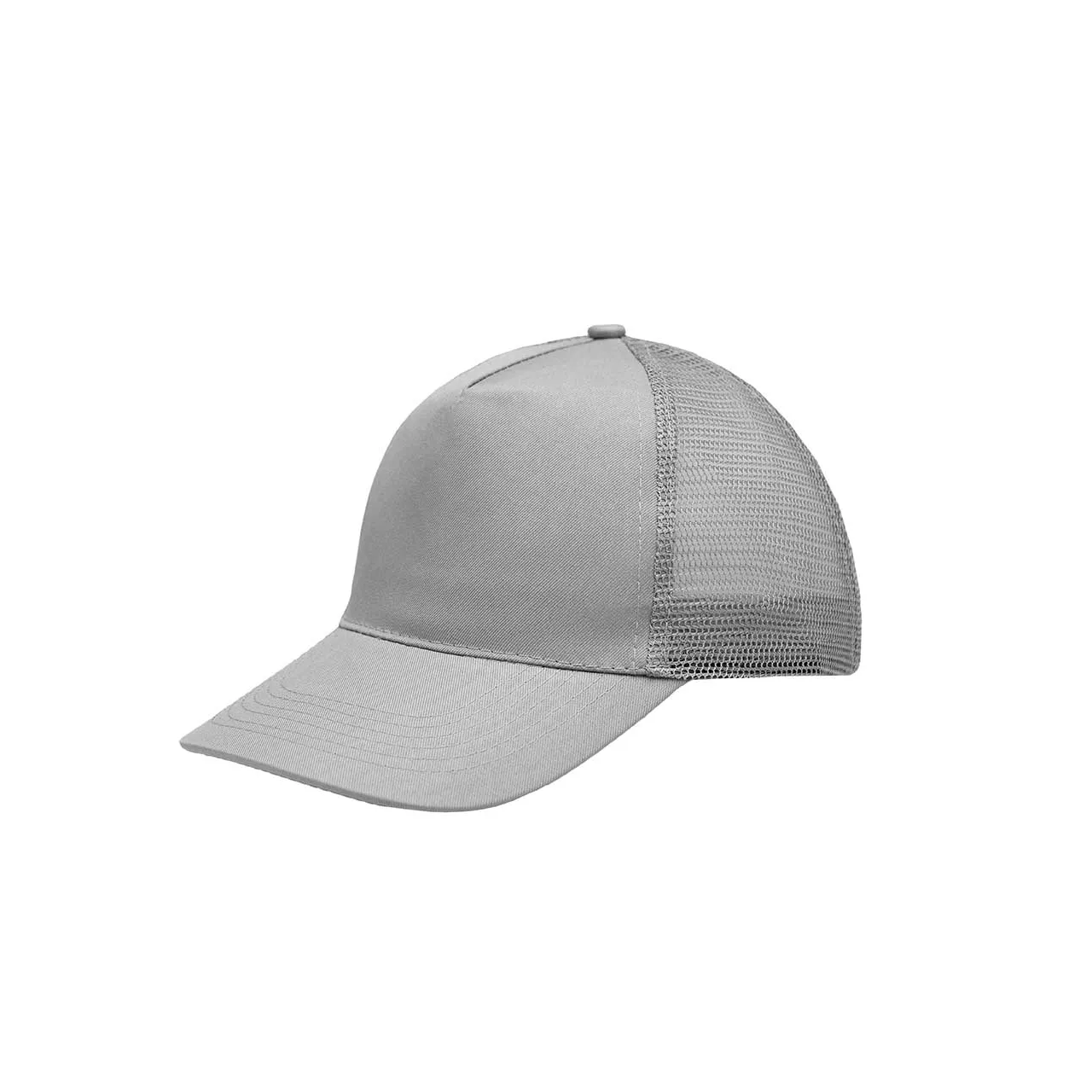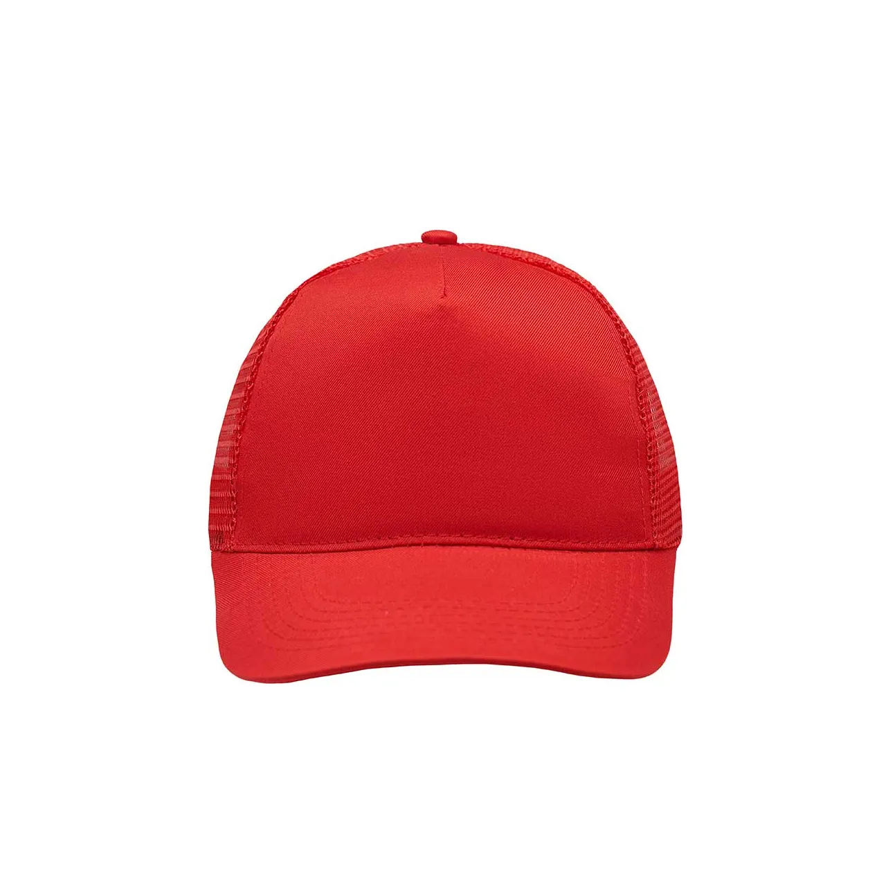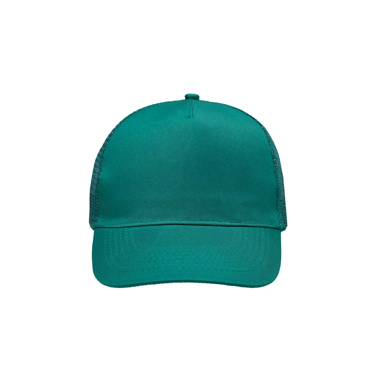 Gorro de 5 paneles en Polyester. Parte trasera con tela red. Diámetro 56 cm. Ajuste con broche plástico.