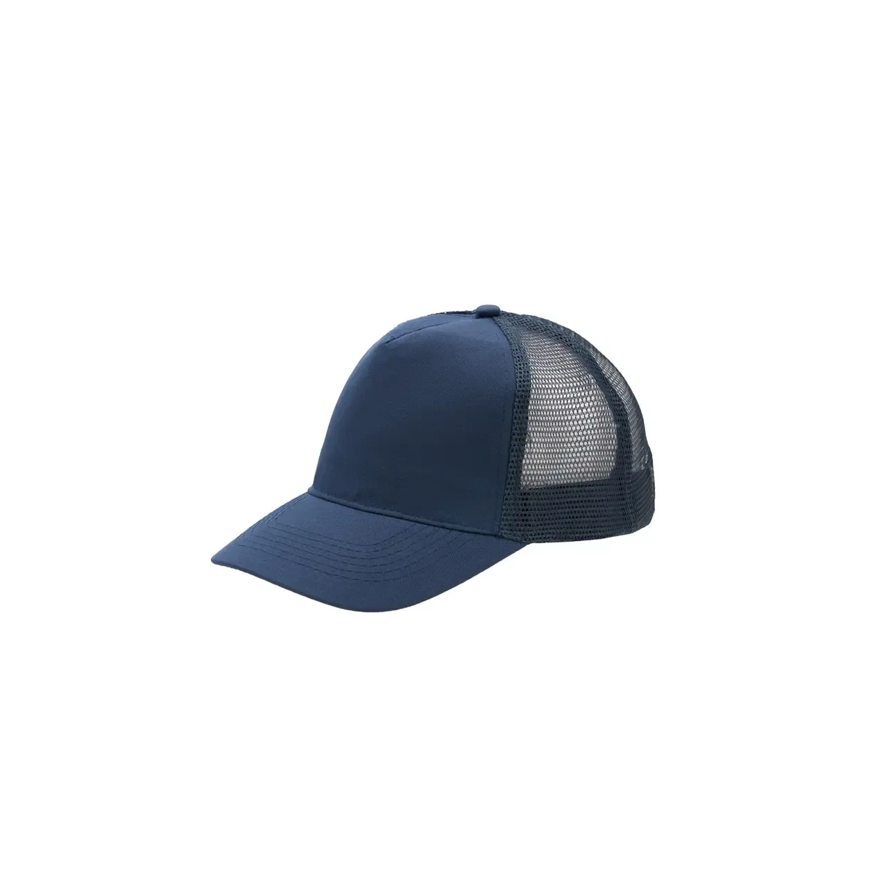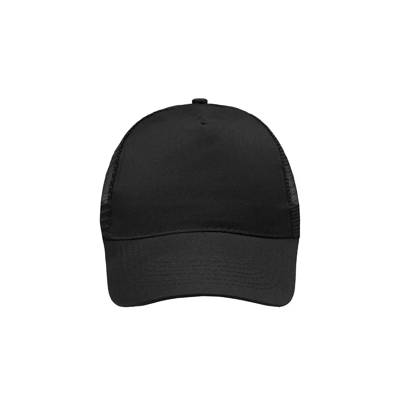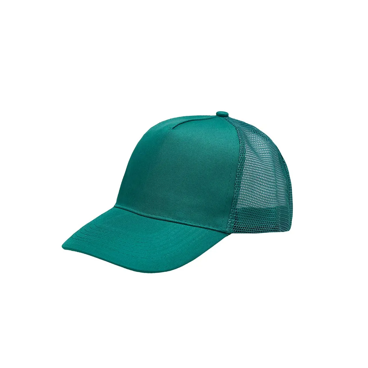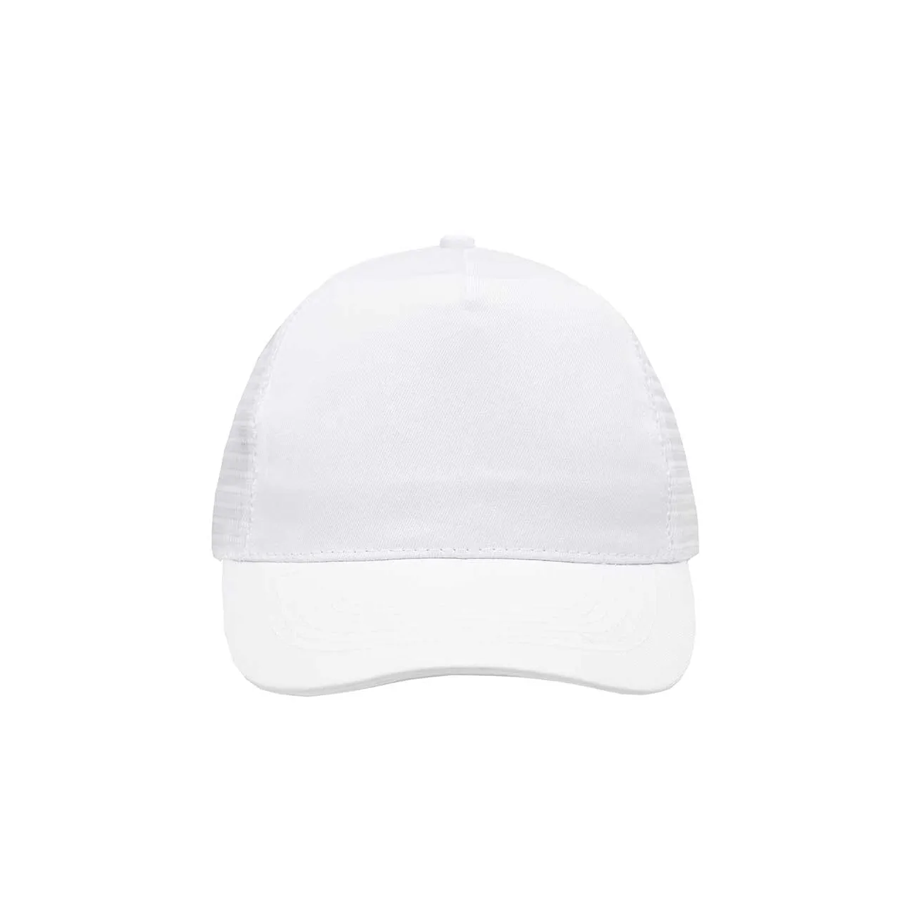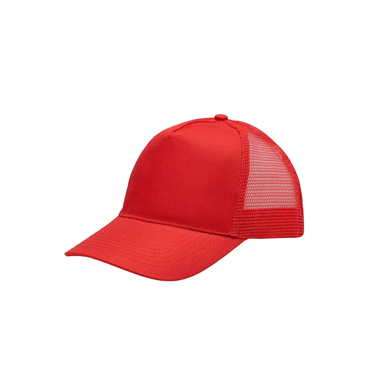 Gorro de 5 paneles en Polyester. Parte trasera con tela red. Diámetro 56 cm. Ajuste con broche plástico.