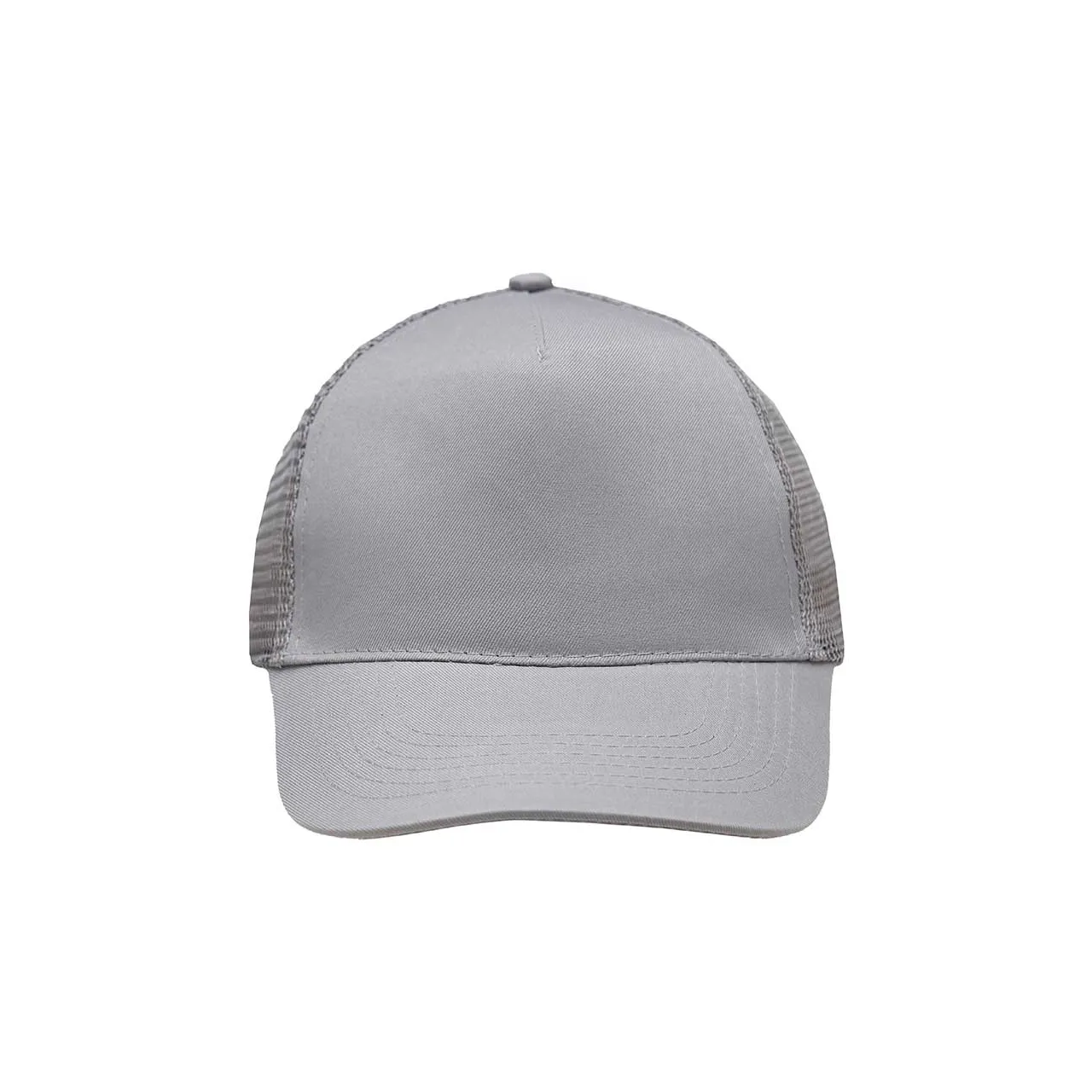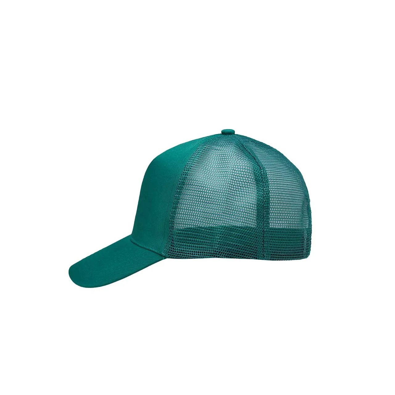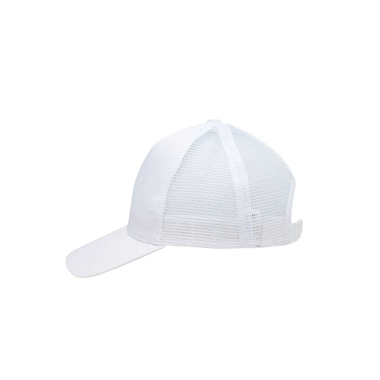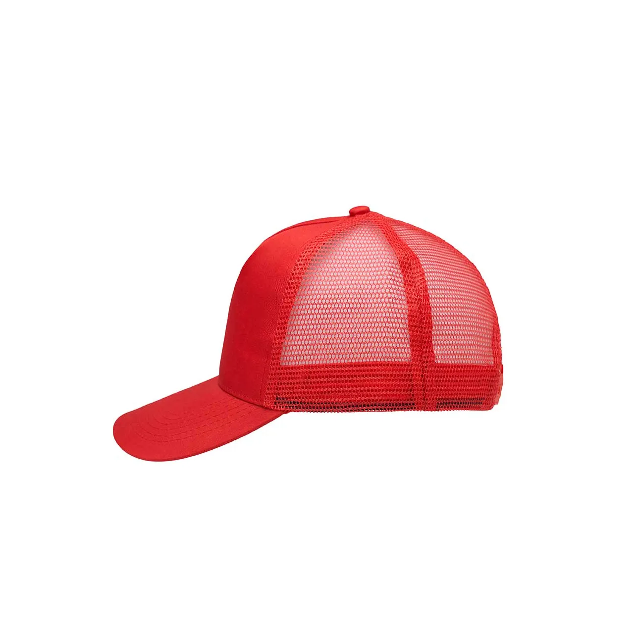Gorro de 5 paneles en Polyester. Parte trasera con tela red. Diámetro 56 cm. Ajuste con broche plástico.