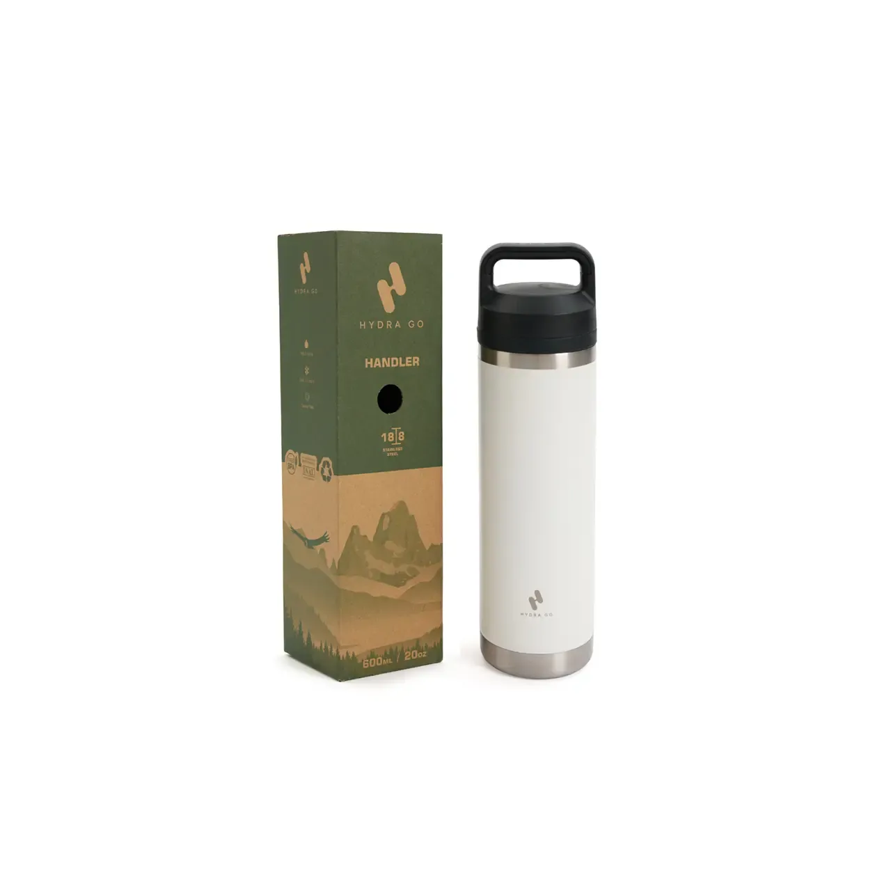 Botella térmica con manija integrada fabricada en acero inoxidable. Hecha con cuerpo interior de acero inoxidable 304, exterior y base de acero inoxidable 201 y tapa de polipropileno, AS y silicona. Cuenta con doble pared aislante, tapa a rosca con cierre hermético y manija ergonómica incorporada para fácil transporte. Es ideal para mantener tus bebidas frías o calientes durante el día, perfecta para la oficina, actividades al aire libre o viajes.