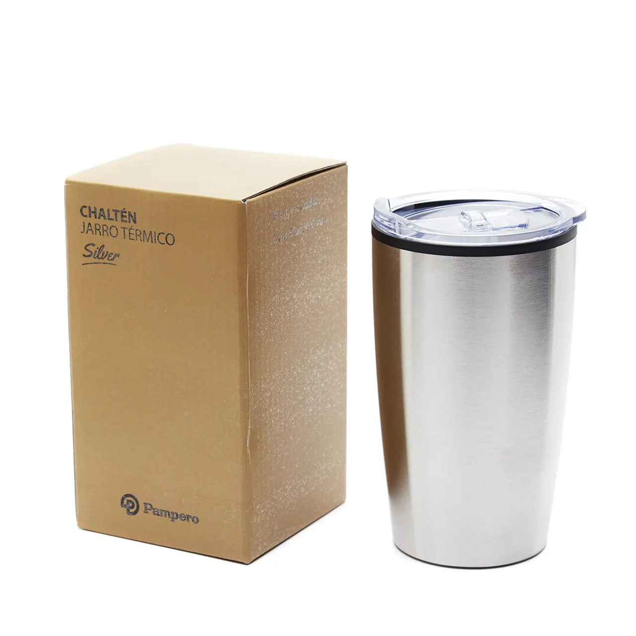 Jarro térmico realizado en acero inoxidable, con tapa cristal clear y base antideslizante.