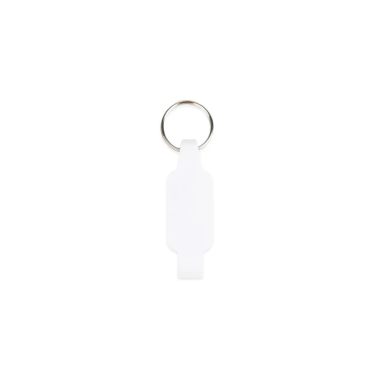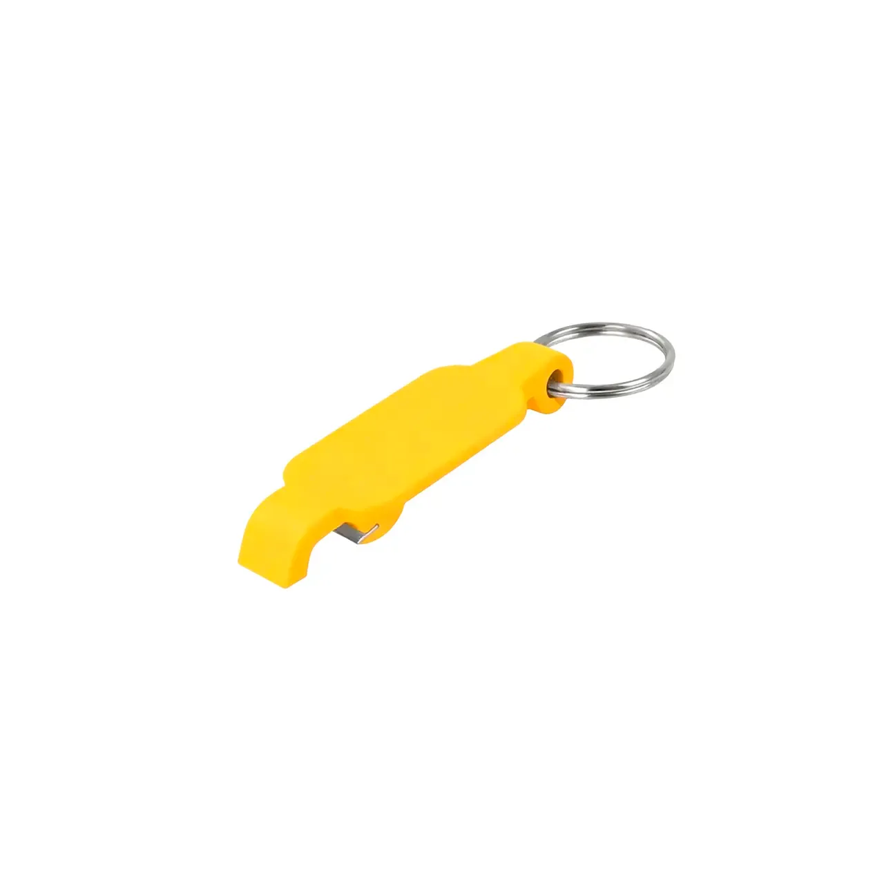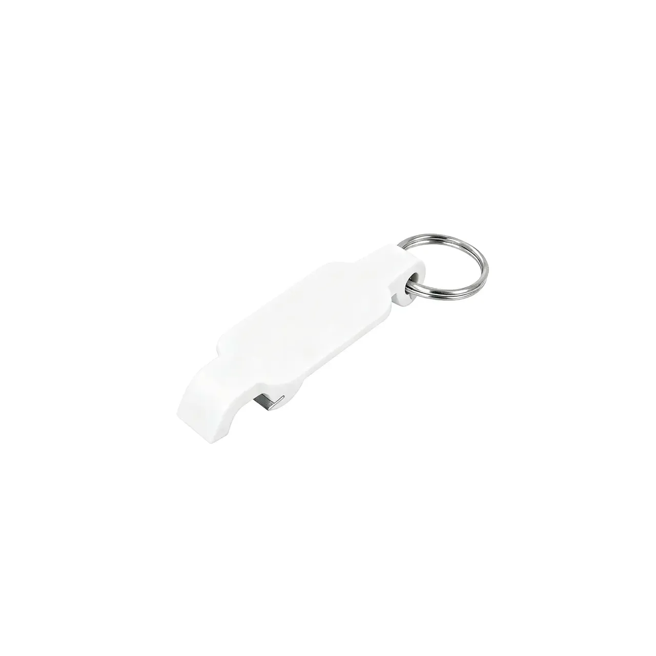 Llavero destapador fabricado en resistente plástico ABS. Cuenta con argolla metálica y diseño compacto disponible en varios colores vibrantes. Es ideal para eventos promocionales, uso diario o como accesorio funcional en llaveros personales.