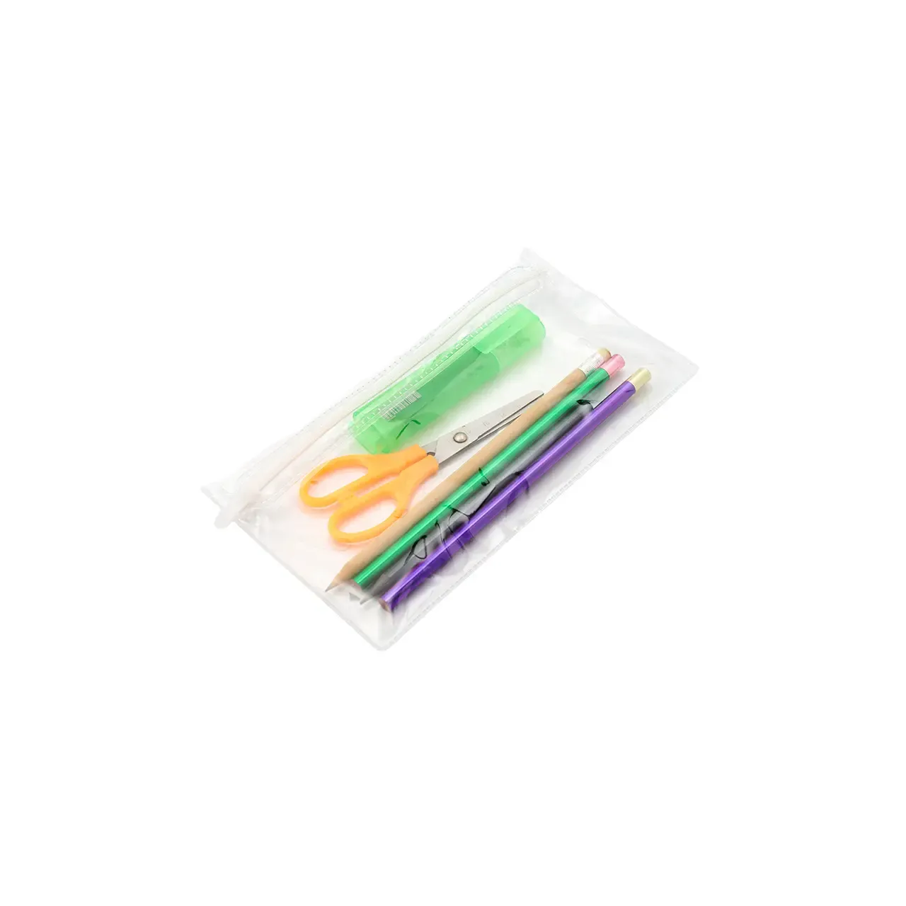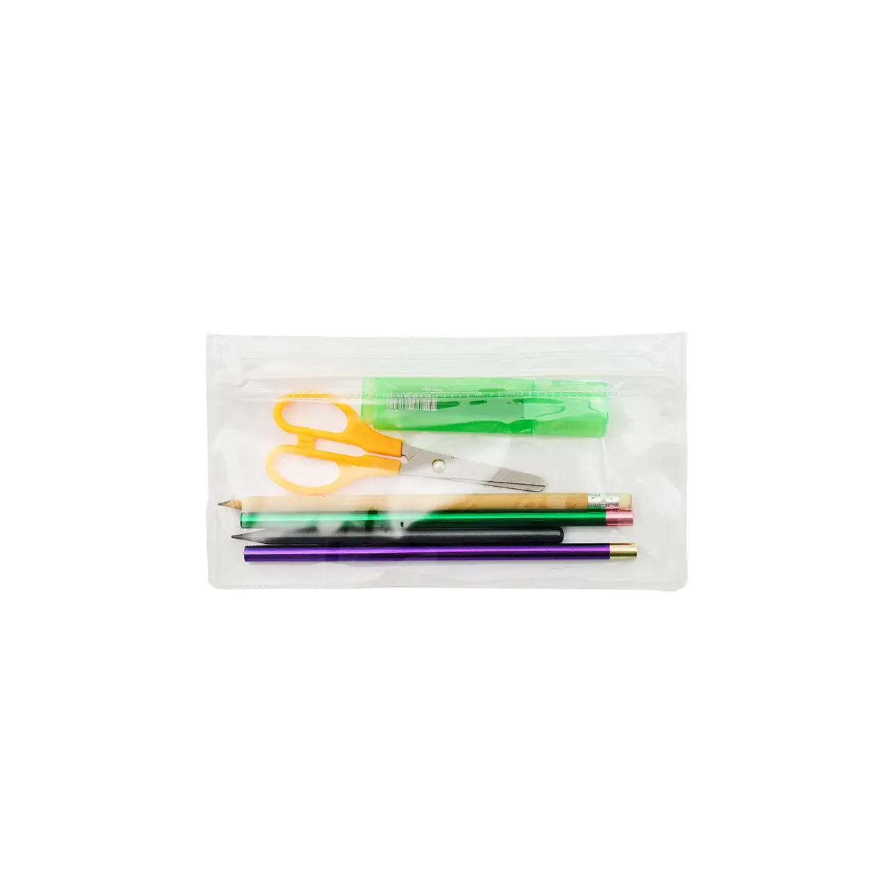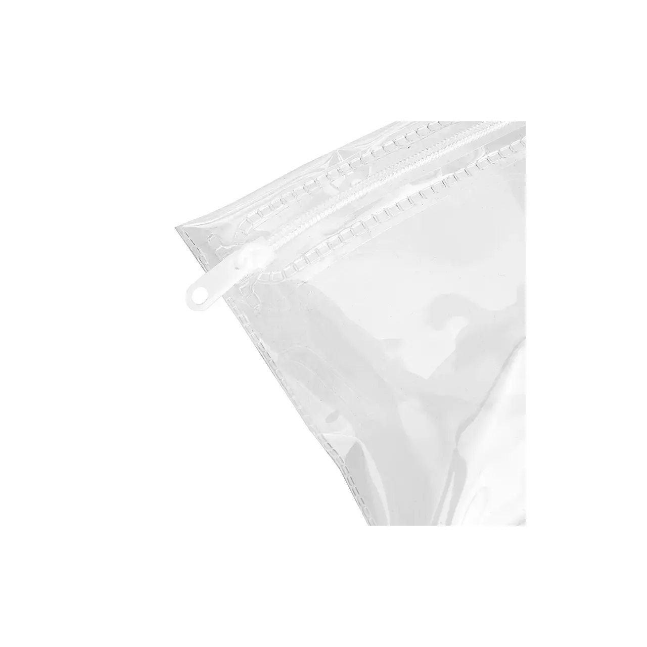 Neceser transparente con cierre, ideal para organizar y transportar fácilmente tus objetos personales.